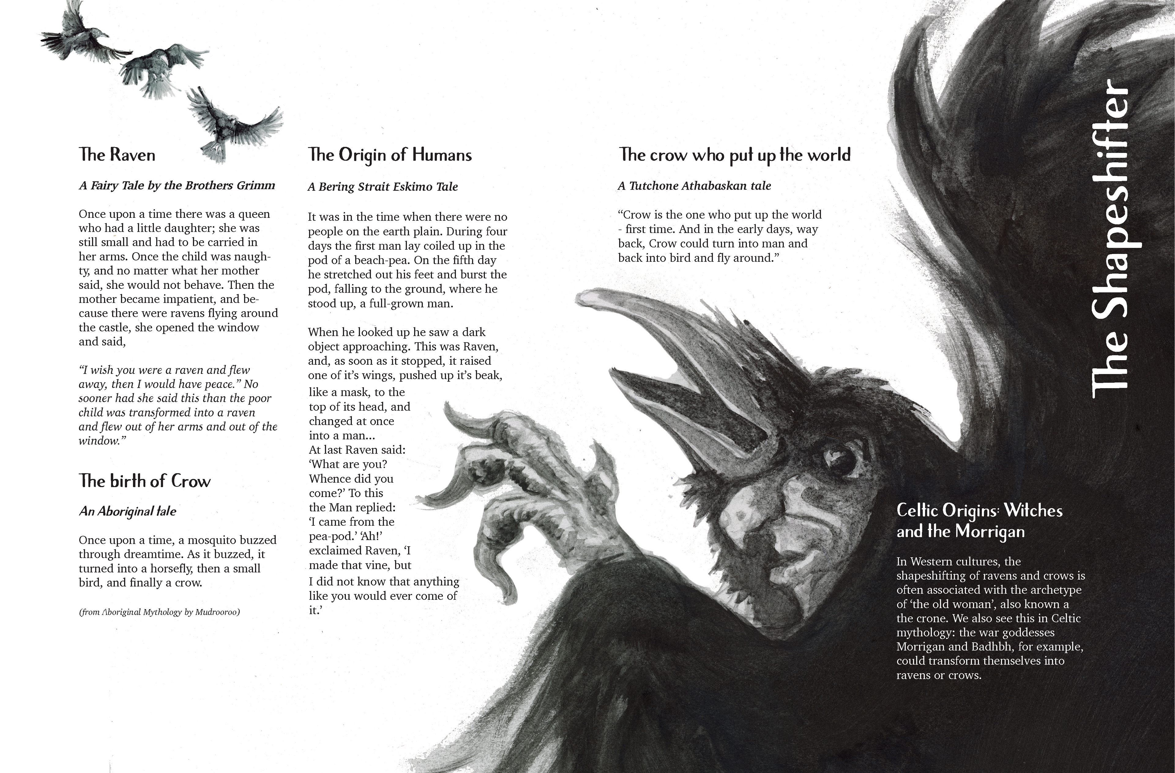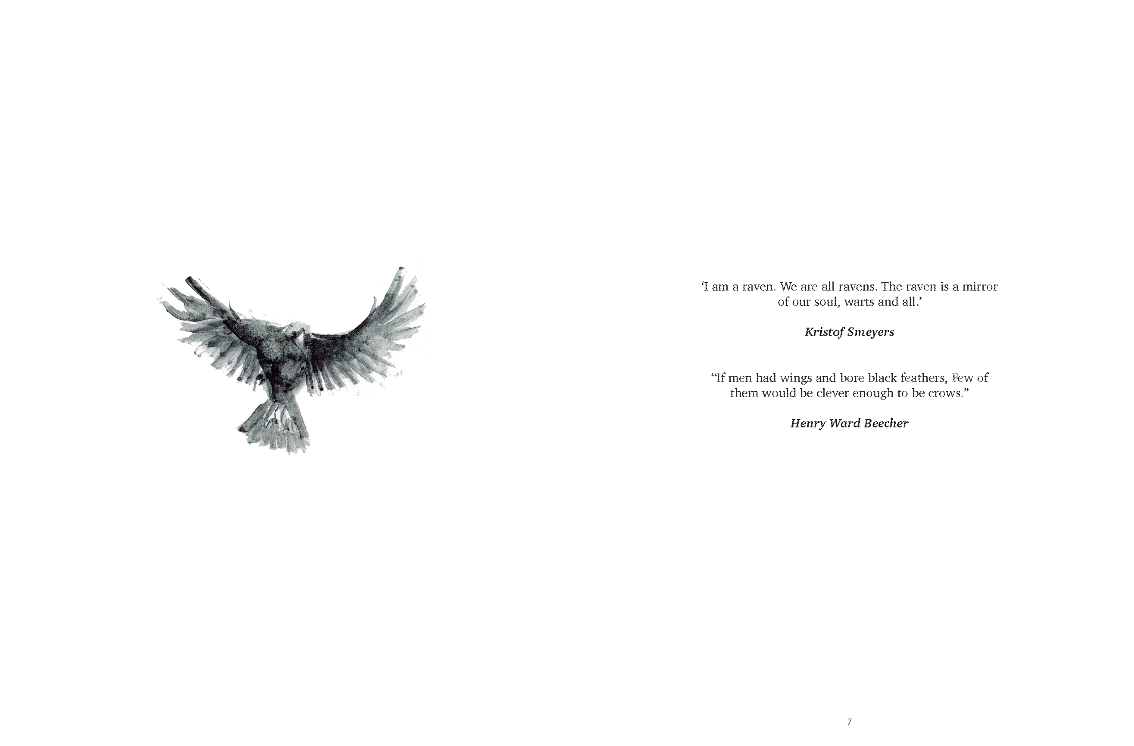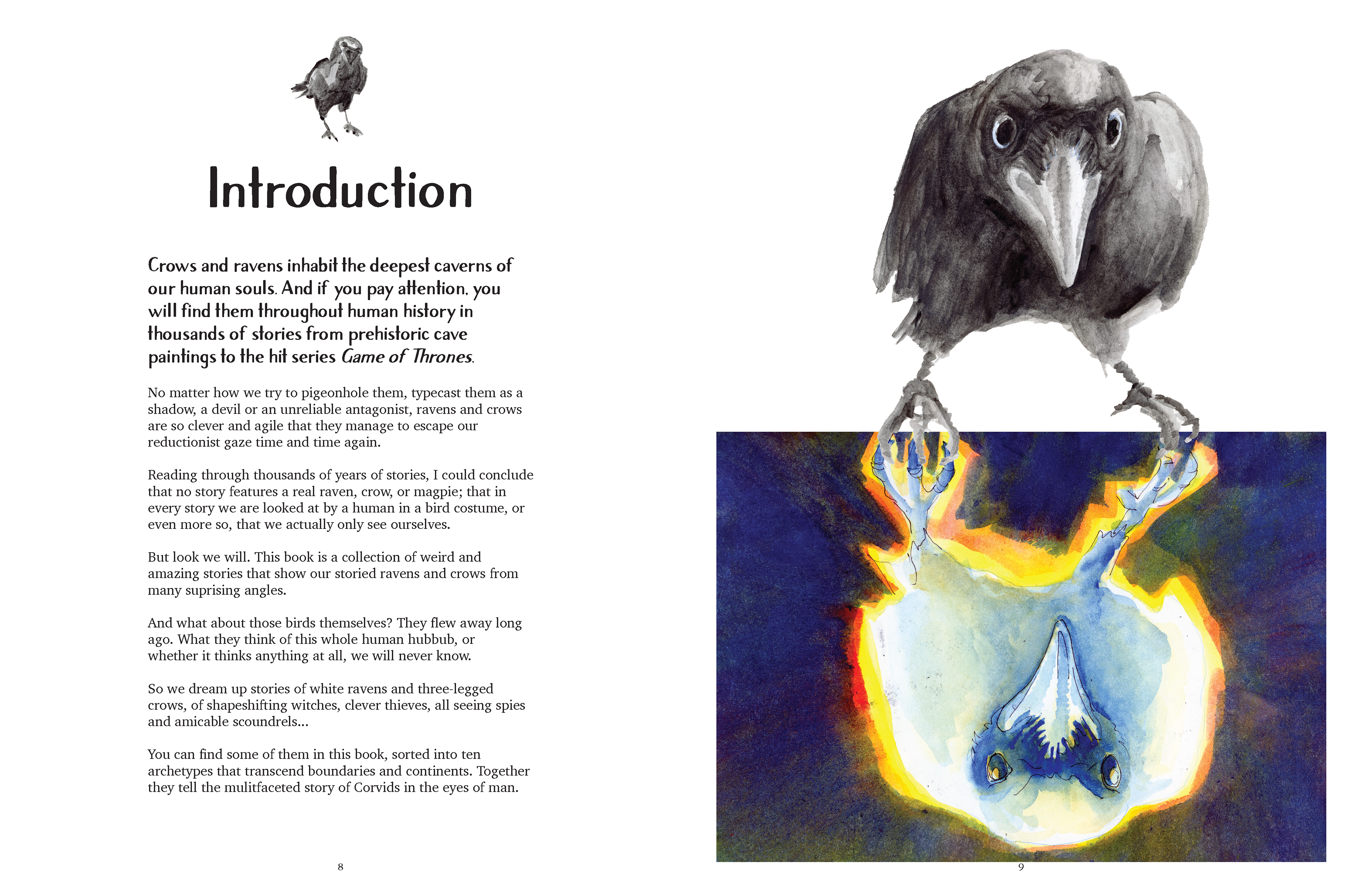 This book-to-be is a prototype of a non-fiction illustrated book about all things 'Corvid'. It will be filled with both fabled and little known stories, scientific fact and - of course - full page illustrations. It will range from the ancient to the contemporary, tracing myths, stories and legends in which our black feathered companions warn us, trick us and - mostly by accident - help us.